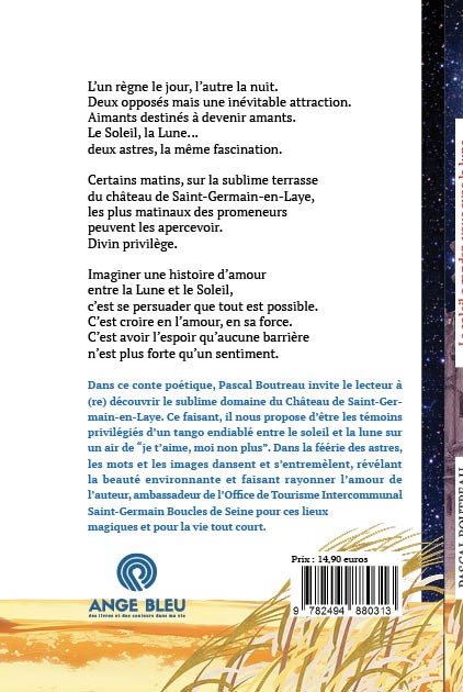 Conte poétique illustré relatant les amours impossibles entre le soleil et la lune, dans le cadre féérique du domaine du Château de Saint-Germain en Laye.